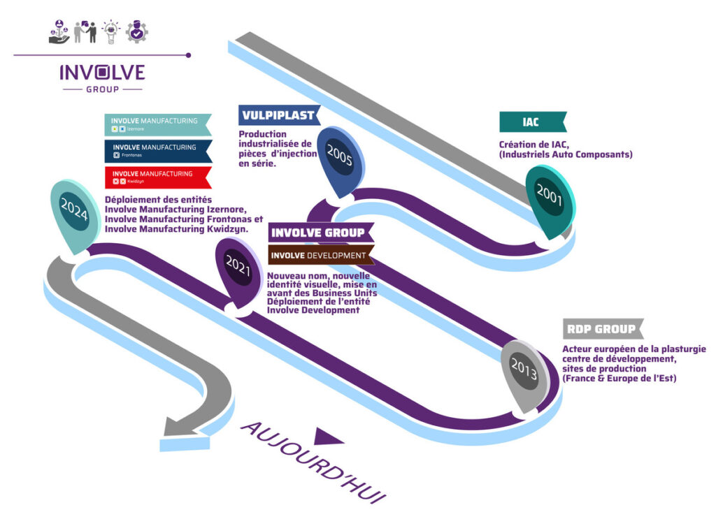 En 2024, Involve Group déploie Involve Manufacturing Izernore et Involve Manufacturing Frontonas. Ce changement s’inscrit dans une démarche continue de consolidation des entités, visant à offrir une image plus cohérente et unifiée sur le marché.