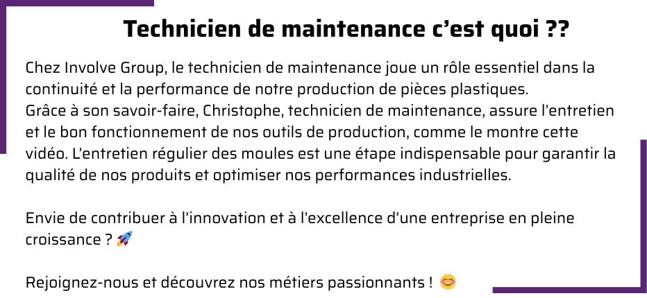 "C'est une belle expérience très intéressante et enrichissante. 😊💪 Elle va me permettre d'acquérir les compétences nécessaires aux réglages et démarrages de nos outillages de production en conformité avec notre référentiel qualité. 🔧📚 En complément, j'intègre un parcours qui reprend des sujets importants comme la sécurité, l'hygiène et l'environnement (HSE). 🌍💡 Cette formation passionnante me permettra à terme d'être autonome sur les changements de production. Elle vient compléter les apprentissages qualité que j'ai eu dans le passé. 👍🎓 Merci à INVOLVE pour cette chance. 😊